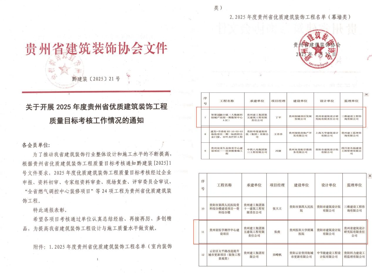 喜訊!貴州建工集團(tuán)五公司兩項(xiàng)目榮獲貴州省優(yōu)質(zhì)建筑裝飾工程獎(jiǎng)